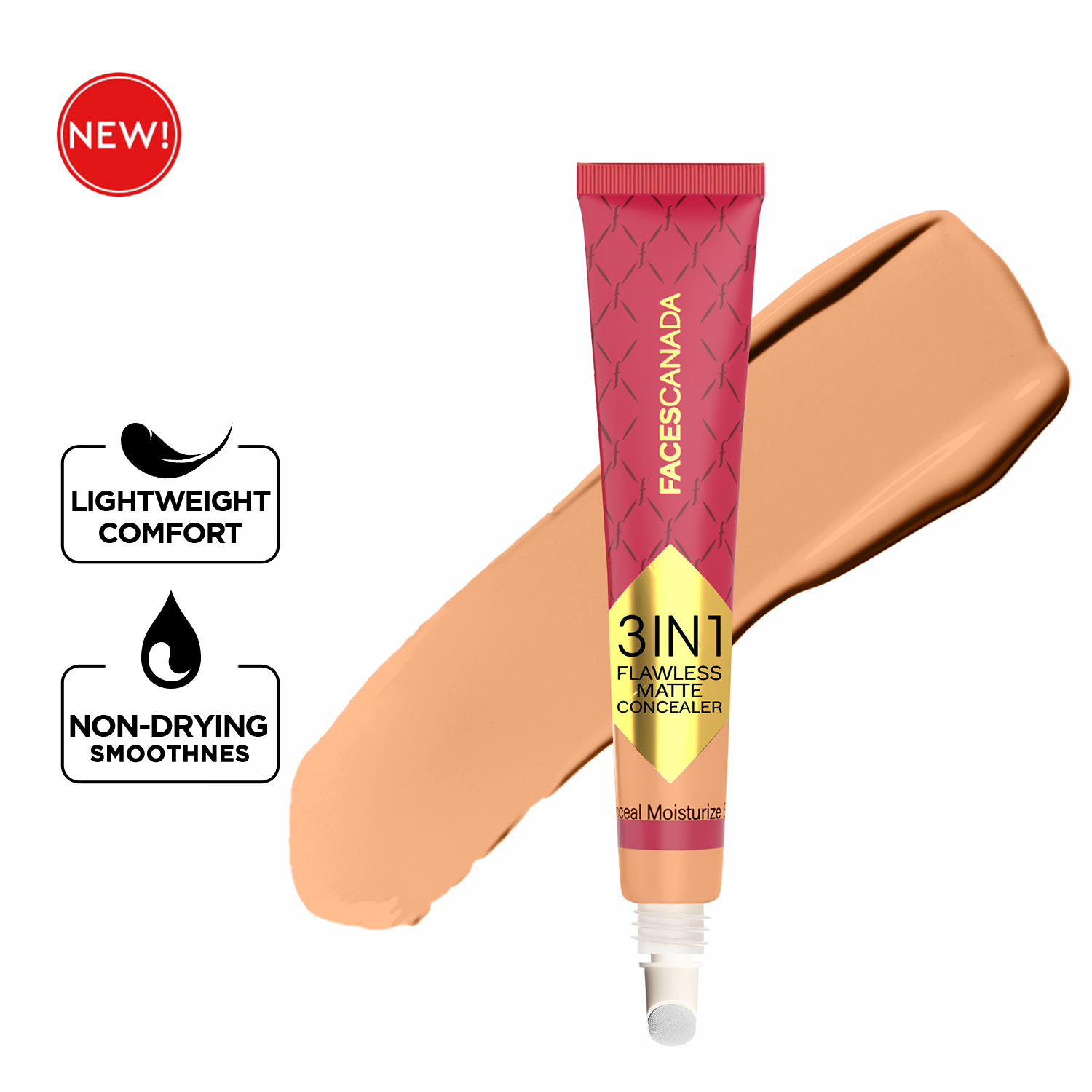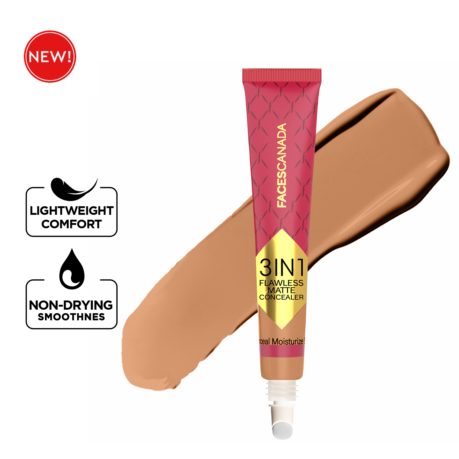 Meet the Faces Canada 3-in-1 Flawless Matte Concealer — a breakthrough innovation that conceals, corrects, and perfects in one effortless stroke. Designed with next-generation technology, this concealer blends skincare and performance makeup for a flawless, airbrushed finish that feels light as silk and lasts all day.