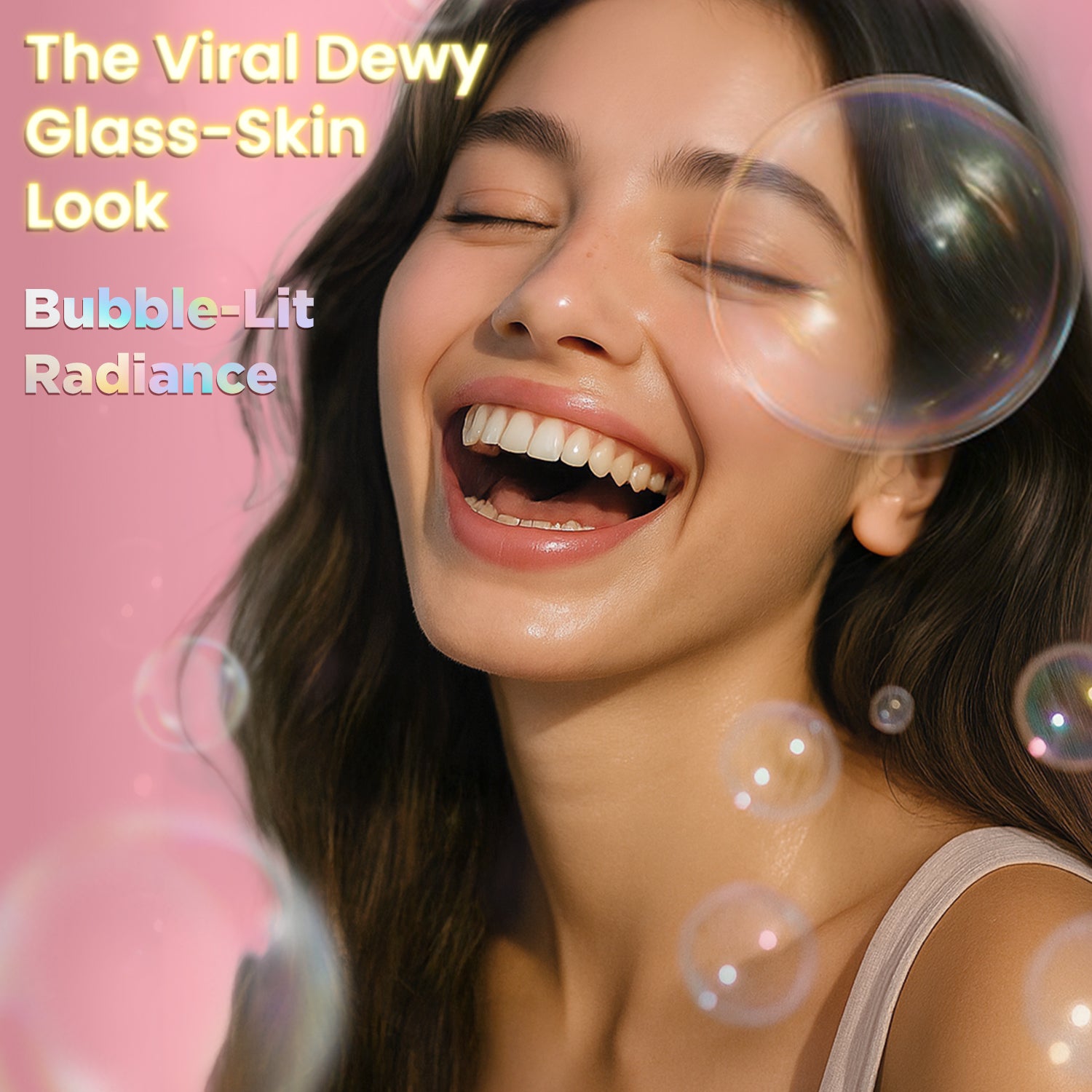 Instant Glow: Micro-pearls create a dewy, glass-skin radiance that glows with the natural brilliance of shiny water bubbles