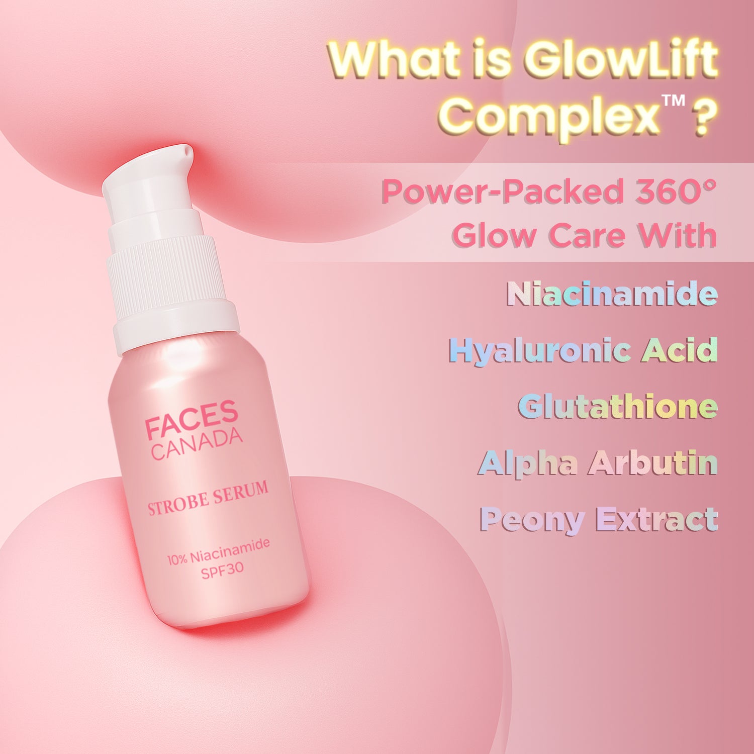 If you’re searching for the best serum for dark spots, uneven skin tone, or hyperpigmentation, the Faces Canada Strobe Serum is your go-to solution. With 10% Niacinamide, Vitamin C, Alpha Arbutin, and SPF 30, it combines the proven science of a brightening serum with the instant luminosity of a strobe cream—giving you clear, bright, glowing skin every single day.