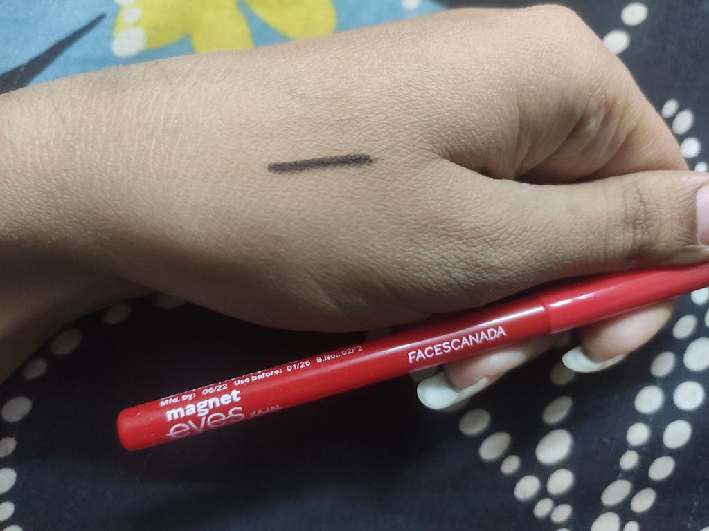 Faces magnet eyes Kajal has a grand black pigmentation. It has an extremely creamy texture & is super gentle. But it glides effortlessly on the lower lid and waterline. The Kajal lasts 4-5 hours on the upper eyelid, around 4 hours on the lower lid & some 45-60 minutes on the waterline, after which the Kajal starts to smudge. So, we see that the face of Kajal is neither smudge-proof nor great black.