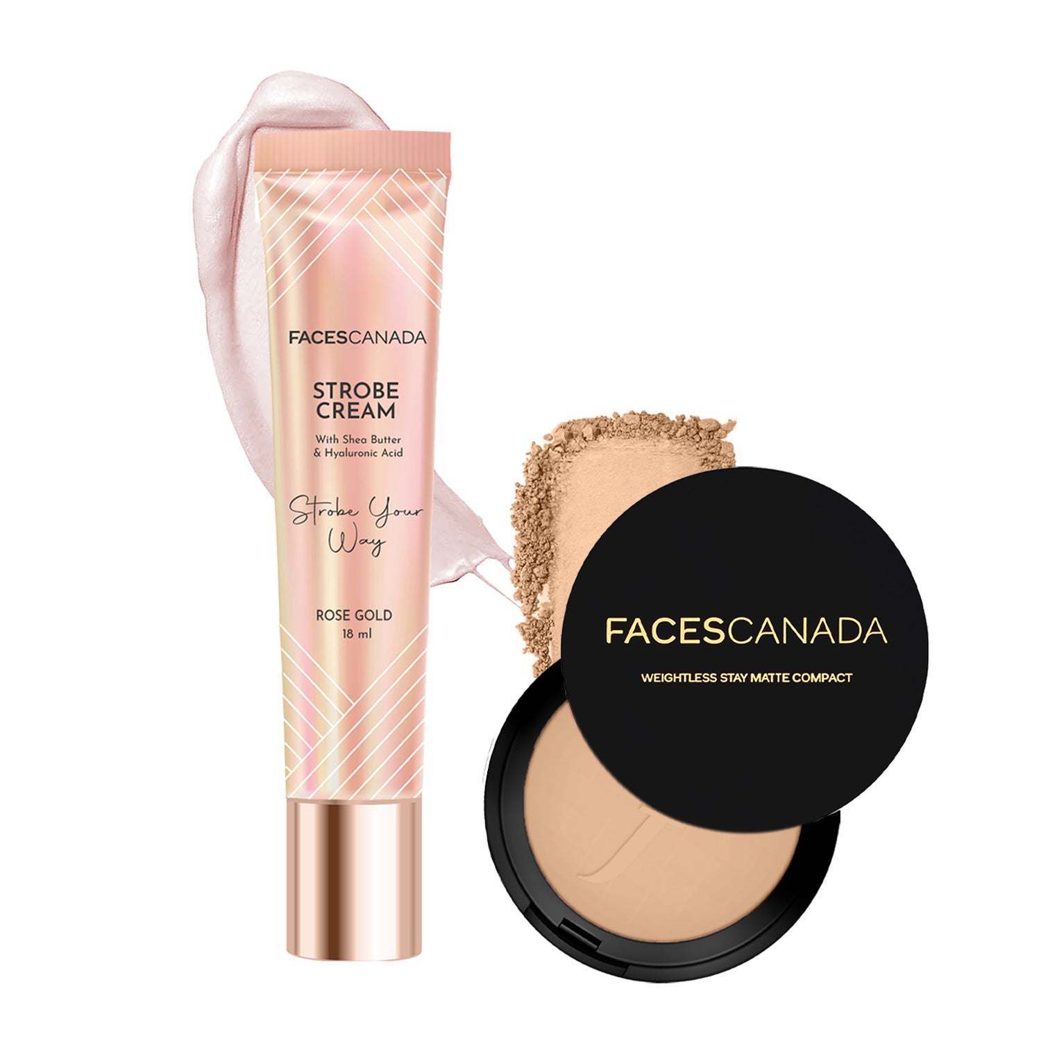 Matte & Shine Combo - Mini Rose Gold Strobe Cream + Compact