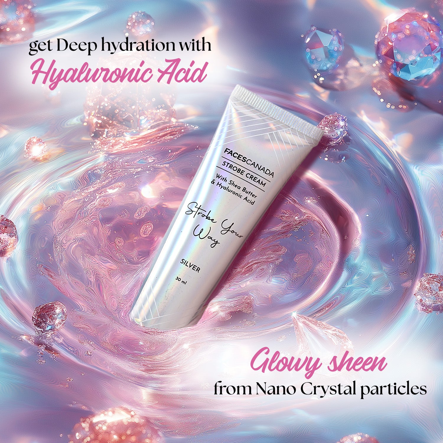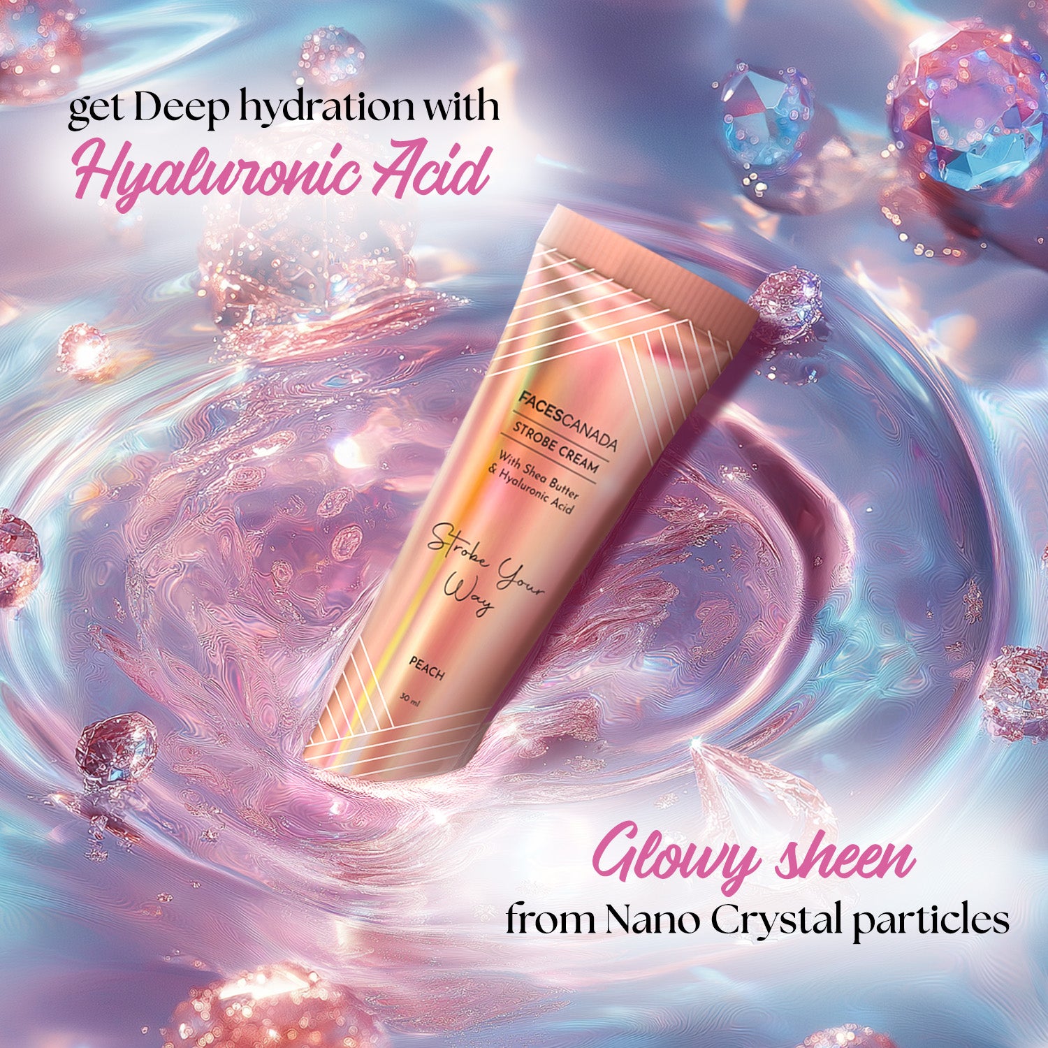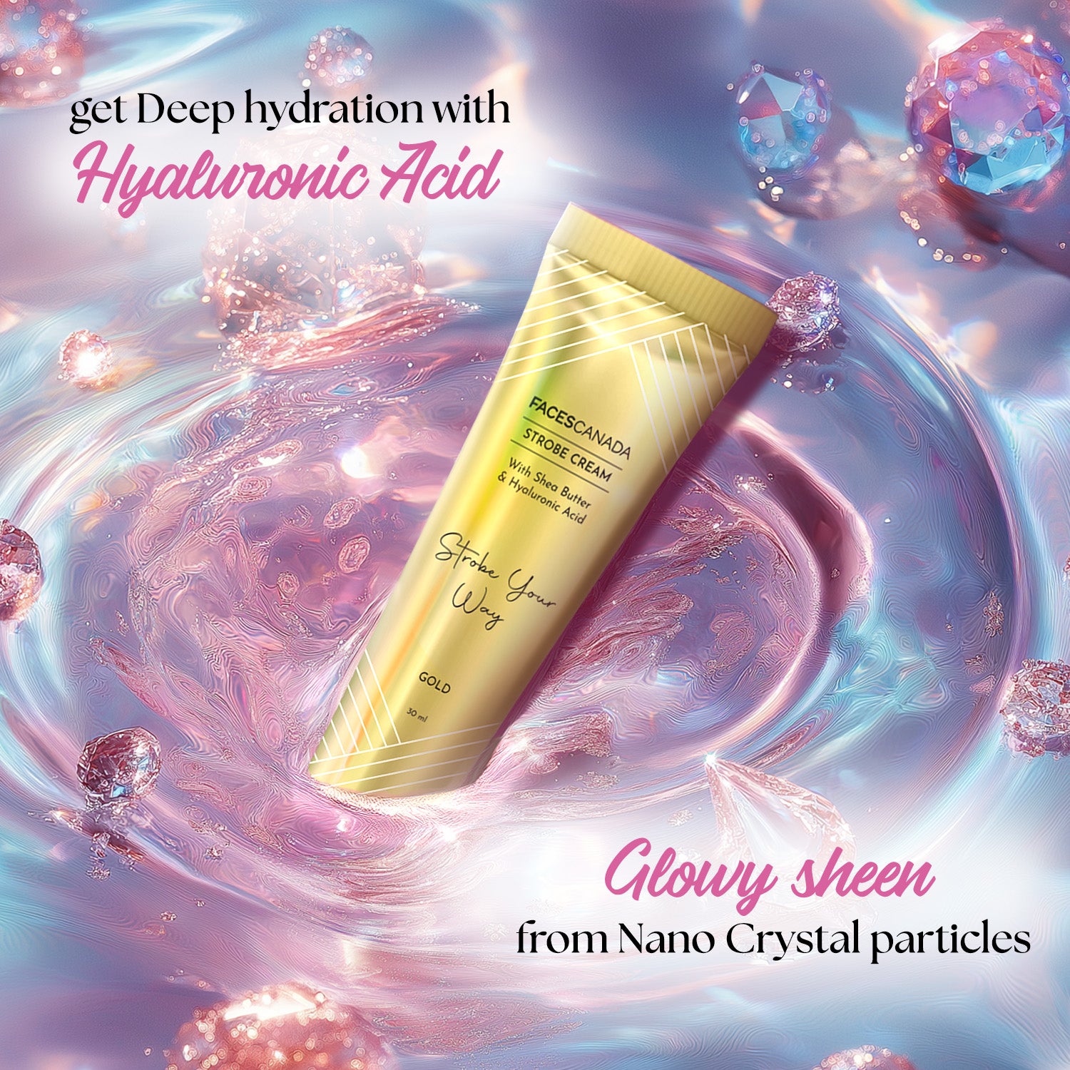 - Instant & Lasting Hydration: The Strobe Cream is curated with Hyaluronic acid which creates a protective layer of hydration on the skin. Enjoy younger-looking, hydrated skin all day long. Shea Butter is an emollient that thoroughly moisturizes the skin so that it looks soft, bouncy and naturally radiant.