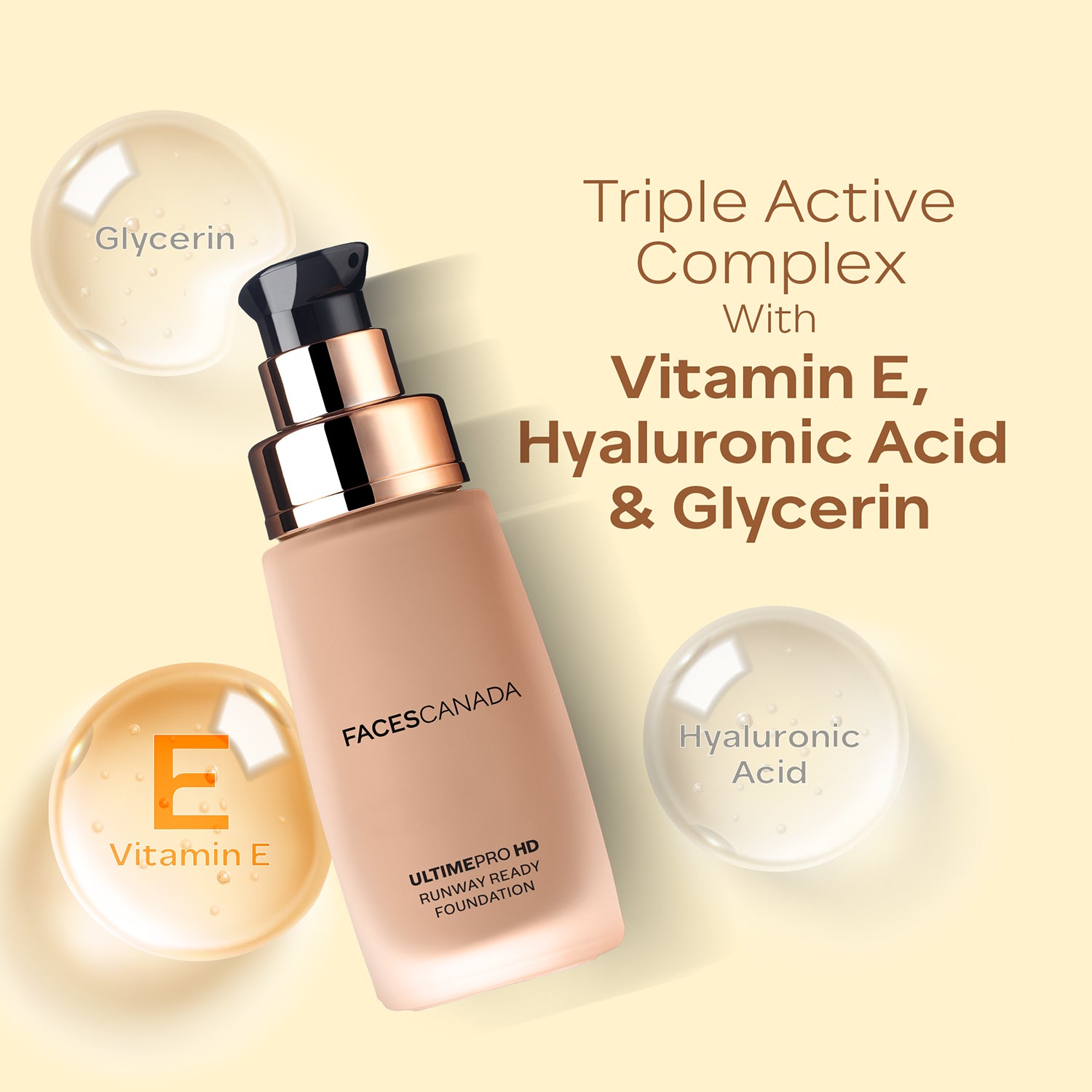 Ultime Pro HD Runway Ready Foundation has a blend of special ingredients that provide you with an understated coverage that blends easily into the skin. It not only complements your complexion but also nourishes layers beneath too.