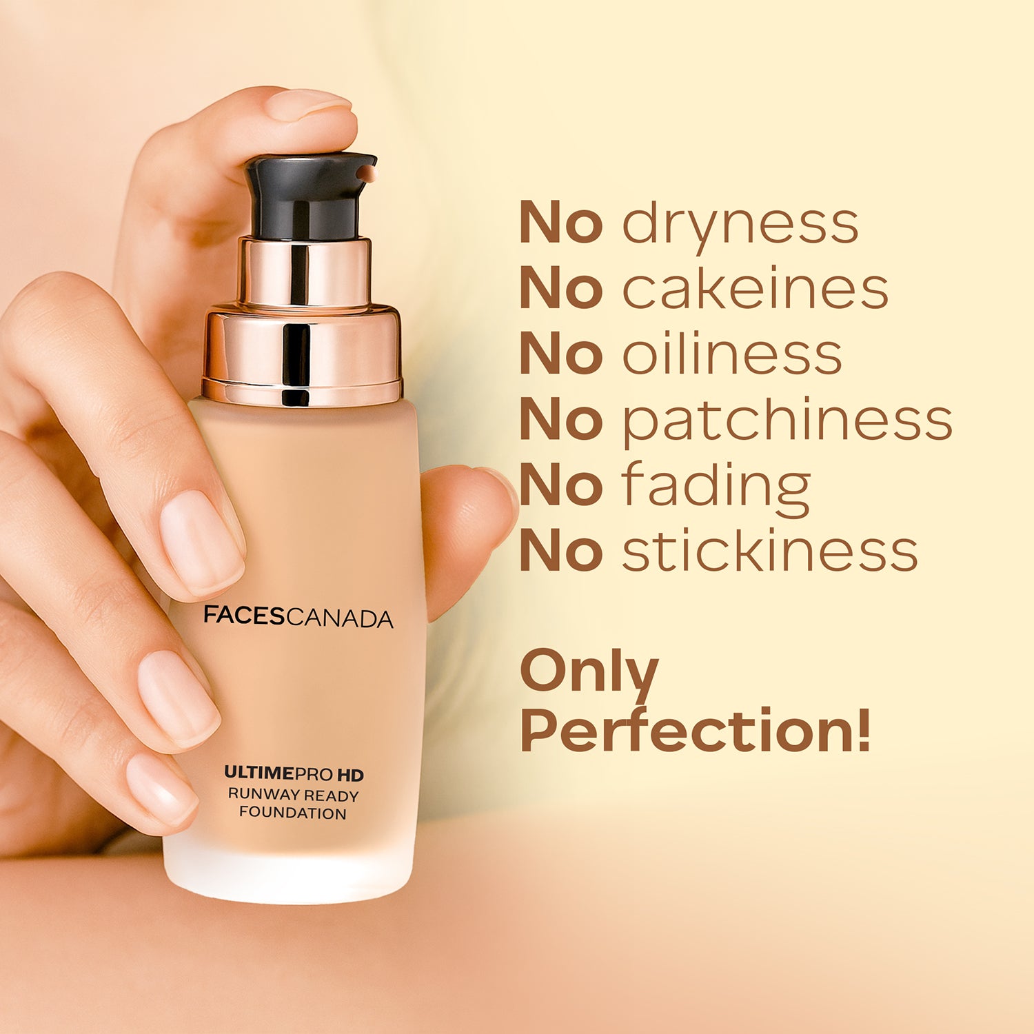 The FACESCANADA Ultime Pro HD Runway Ready Foundation has a super smooth formula that effortlessly blends into the skin.