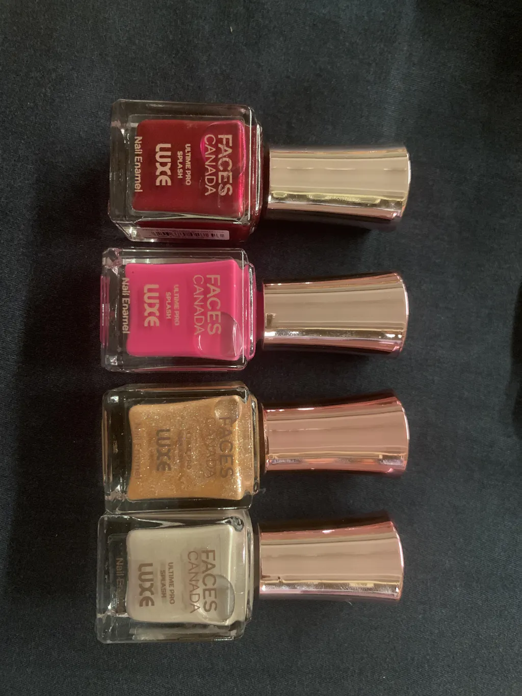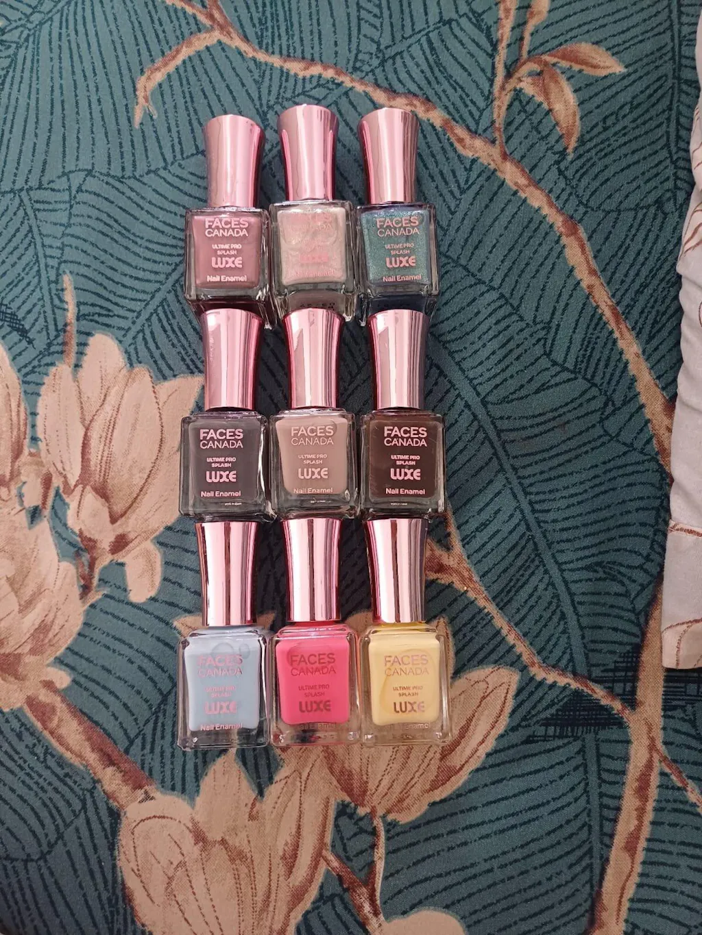 Faces Canada have the best nail colors in the market. I have been using them for a period of 3-4 years now and I don't feel like purchasing any other brand. The formula is really good. If you are looking for glittery nail paints and the normal glossy ones, this is the best range I believe. They don't chip off and the shine is intact for many days.